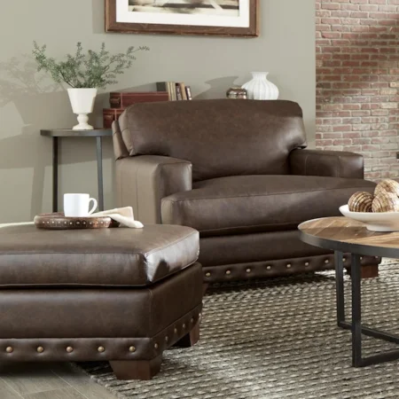 Brown oversized chair and ottoman. Also included is oversized leather chair and ottoman. Leather Furniture Leather Sofas Leather Sectionals Leather Chairs Leather Recliners Leather Ottomans Benches Leather Upholstered Beds Sectionals Accent Chairs Chaises Ottomans.